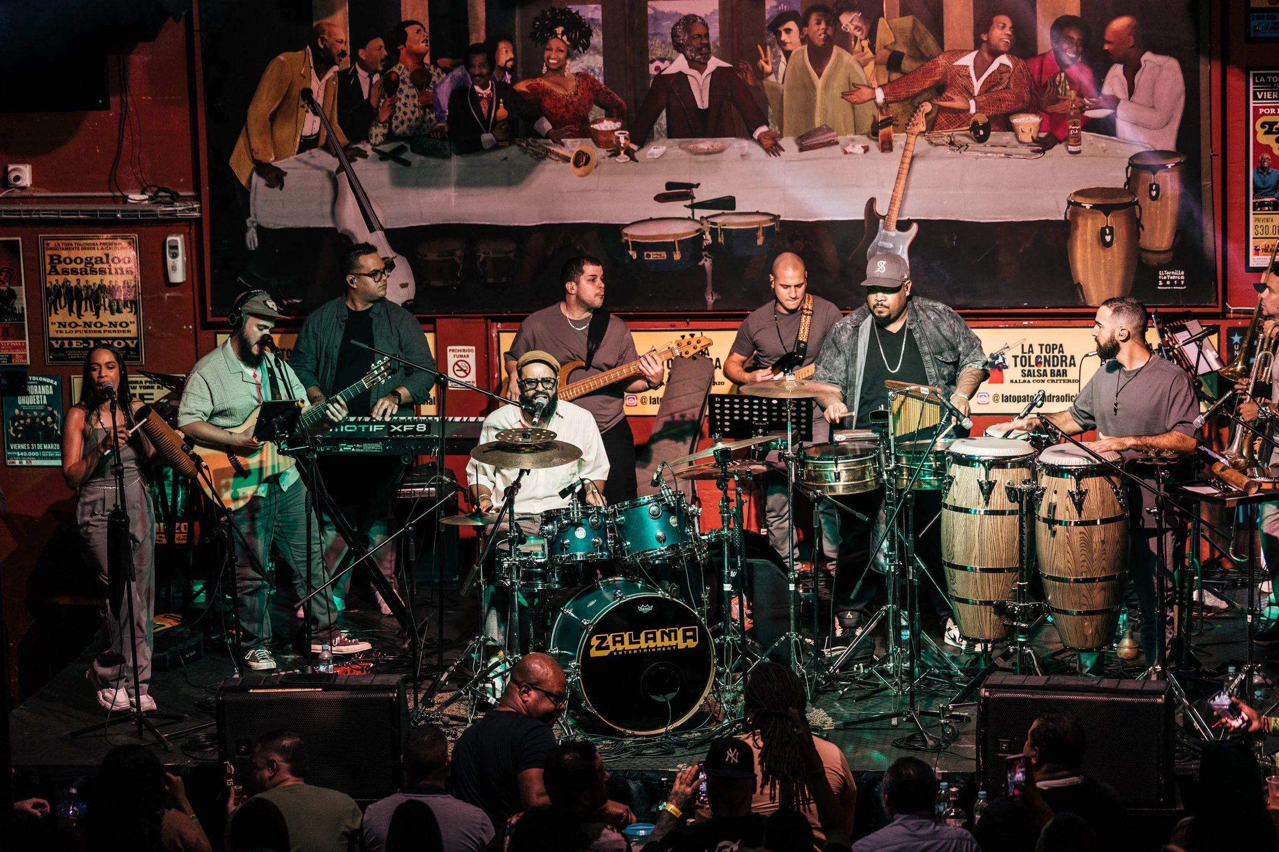Anthony Almonte’s Live Recording. From left to right: Anthony Almonte, Jonathan Montes, Melissa Ocasio, Juan Cosme, Kevin Ricard, Andy Abad, Yosmel Montejo